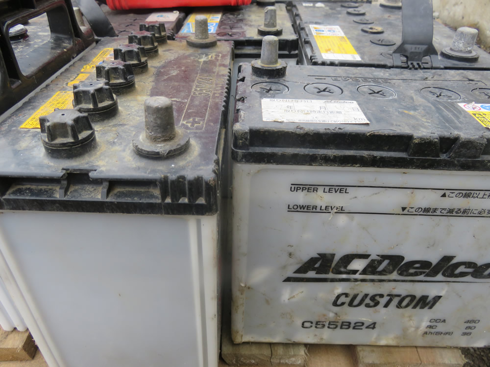 自動車やトラックで使用されるバッテリー(鉛蓄電池)です。 ・鉛の含まれていないバッテリーは、取り扱いできません。